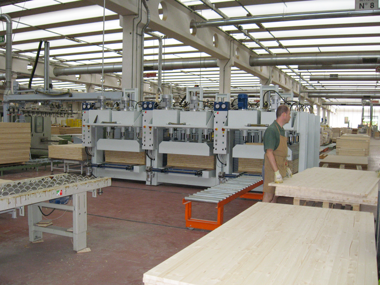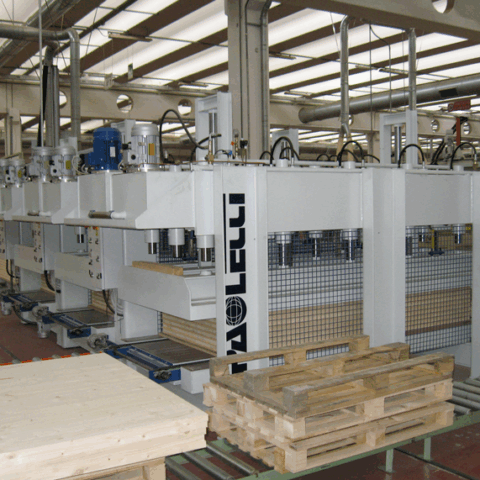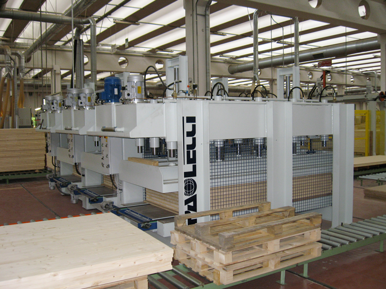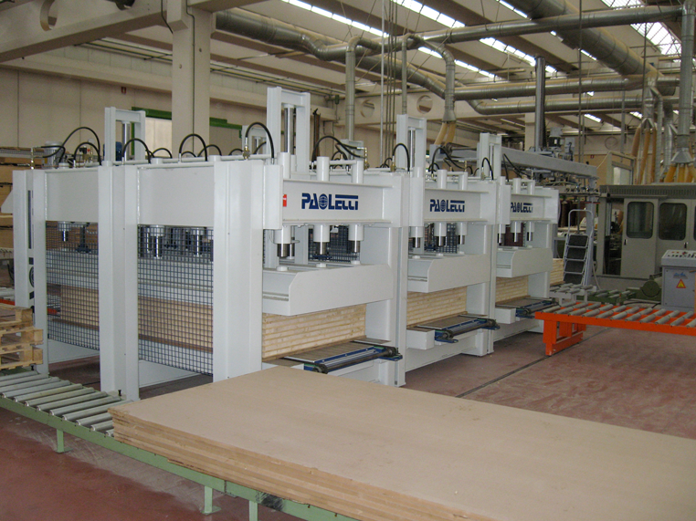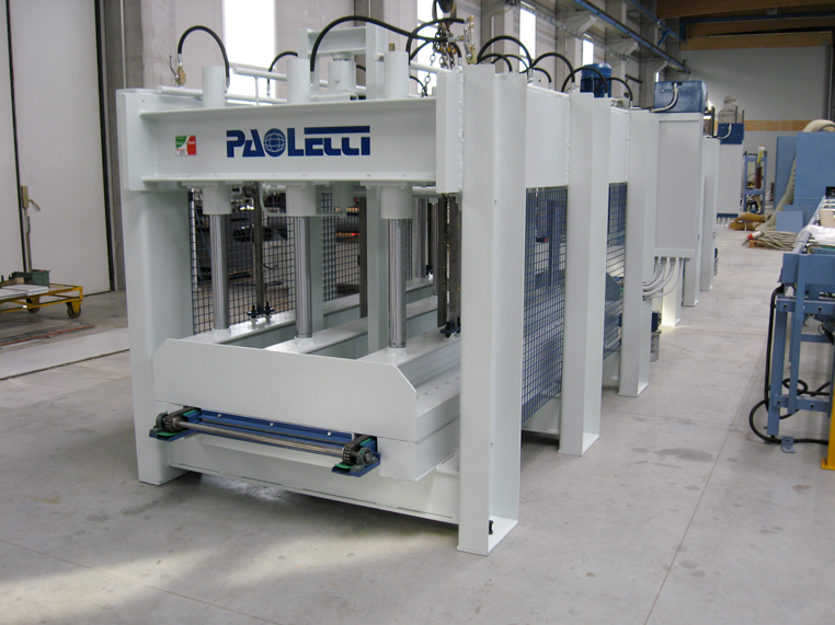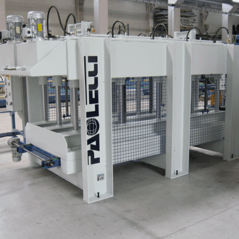 La struttura dei piani mobili superiori e dei piani fissi inferiori sono realizzati in travi assemblate e saldate su dime di precisione; per facilitare le operazioni di carico e scarico delle cataste di pannelli, fra le travi del piano fisso inferiore, vengono installate due file di rotelle folli a scomparsa, montate su molle, in corrispondenza di ogni piano mobile.